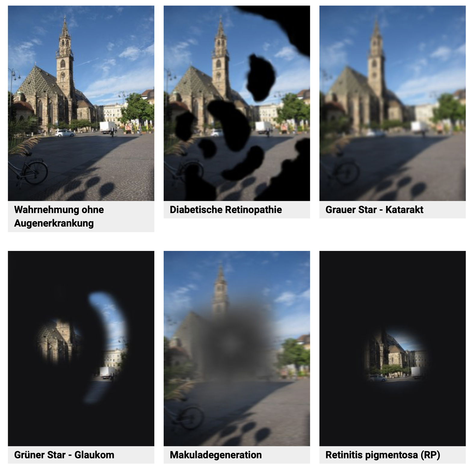 Simulation verschiedener Sehbeeinträchtigungen (Bildquelle: www. blindenverband.bz.it)