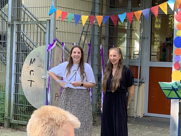Ein Klassengeschenk wurde von der Schulleitung auch überreicht. Außerdem freut sich die Klasse sehr nun den Schulhof der "großen Schüler:innen* nutzen zu können.