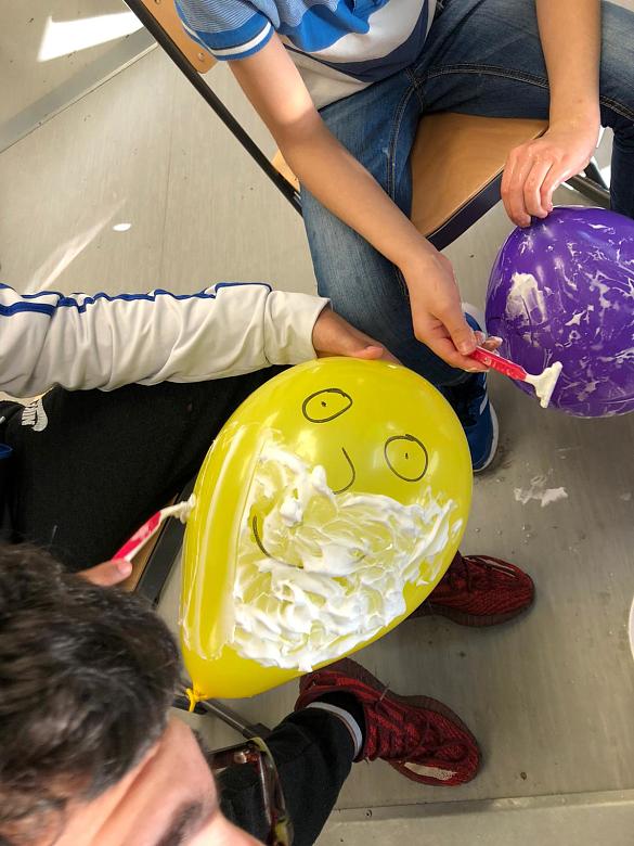 Im Modul Körperhygiene lernten die Jugendlichen beispielsweise unterschiedliche Teilbereiche der Hygiene und deren Produkte kennen. Nach den theoretischen Grundlagen folgten praktische Übungen in denen die Schüler:innen in Kleingruppen nochmal das richtige Hände-und Haarewaschen oder auch das korrekte Zähneputzen übten. Mithilfe von Luftballons erprobten sie unter Anleitung zudem auch eine Nassrasur, was ihnen ebenfalls sehr viel Spaß bereitete. Im Anschluss wurde noch eigene Seife hergestellt, welche sie mit nach Hause nehmen durften.