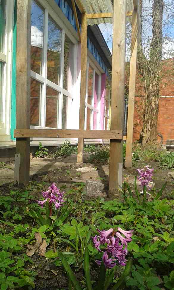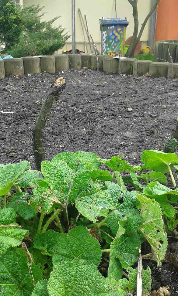 Im Laufe der Zeit hat sich die ursprüngliche Bepflanzung der Beete verändert. Dennoch sind die mittlerweile maroden Hochbeete mit einigen duftenden Pflanzen wie Minze, Salbei oder Lavendel gefüllt.